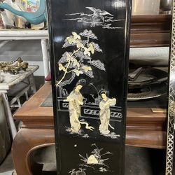 Chinese Vintage Carved Stone Inlay Panel Lacquered Wood $150Whittier, CA