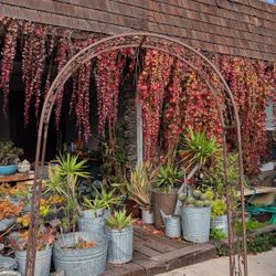 Rustic Scroll Garden Arch Vintage Trellis W Rusty Patina Tall Metal Bench Surround W Heart Detail$88Rossmoor, CA
