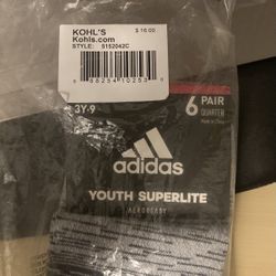 Adidas Youth Superlite Socks -6 Pairs - Shoe Size L - 3Y -9 - Brand New$10Garden Grove, CA