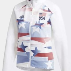 adidas USA Volleyball Warm up Jacket White Navy Red Womens $85Bell Gardens, CA