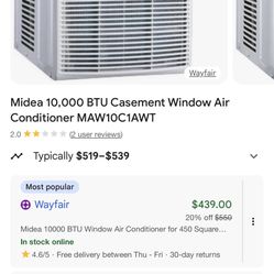 Midea 10,000 BTU Casement Window Air Conditioner ($120Hazard, CA