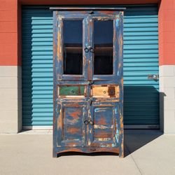 Vintage Distressed Blue Rustic Cabinet / Linen Cupboard, c. Mid-20th Century — Patinaed Multi-Tone $800Chino Hills, CA