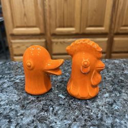 Vintage Orange Rooster and Duck pair of salt and pepper shakers. Preowned missing stoppers. Has been on display in a cabinet with a very large salt $25Artesia, CA