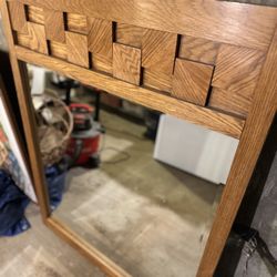 Antique Brutalist Mid Century Large Mirror by Lane Furniture 1960s Red Oak $795Hollywood, CA