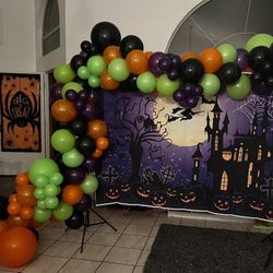 Halloween Balloon Garland Arch Kit, Boo Foil Balloon With Black Orange Purple Confetti Balloons, Spider Balloons, Spider Web And Bat, Eyes Balloons F$8Santa Ana, CA