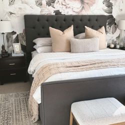 Queen Size Button Tufted/Fabric Upholstered Bed Frame/Dark Grey A-2$139Costa Mesa, CA