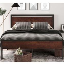 Full Size Metal Platform Bed Frame with Wooden Headboard Mahogany I-7$115Santa Ana, CA