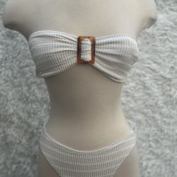 Cream Textured Bikini Set with Buckle size XS$12Cty Of Cmmrce, CA