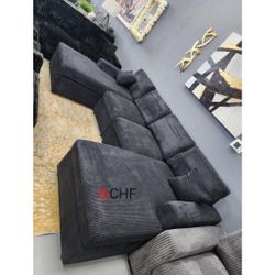 ✅️✴️ Jumbo Corduroy Sectional Sofa 99x99 " With Ottoman. White Or Black Super Comfortable ✅️🟢$495Phillips Ranch, CA