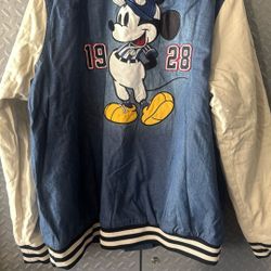Disney Mickey Mouse Baseball Denim Bomber Jacket Size Medium- BoxLunch Exclusive$85Chino, CA