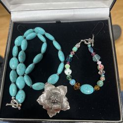 Turquoise Style Statement Necklace + Boho Beaded Bracelet Set Sterling Silver Clasp$38Long Beach, CA