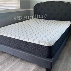 Queen Size Grey Linen Bed W Ortho Mattress $359Anaheim, CA