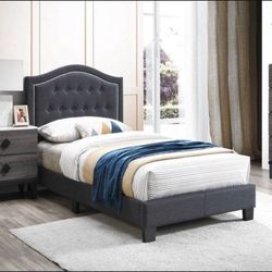 Twin Size Grey Button Bed W Ortho Mattress $279Los Angeles, CA