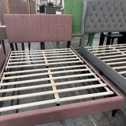 Calking Size Grey Wingback Tufted Bed W Ortho Mattress $579Anaheim, CA