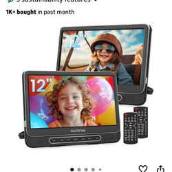 WONNIE 12" Dual Car DVD Players Portable DVD Players for Car Headrest Play a Same or Two Different Movies with 5-Hour Rechargeable Battery, Mounting B$140Phillips Ranch, CA