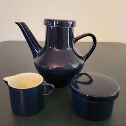 Melitta Stockholm Coffee/Tea Pot, Creamer, Sugar Bowl - 1960's Lilo Kanter Design Cobalt Blue$25San Dimas, CA