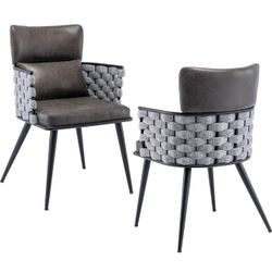 2 Mid-Century Modern Metal Leg Dining Chairs with Synthetic Leather Upholstery, for Kitchen or Living Room$100El Monte, CA