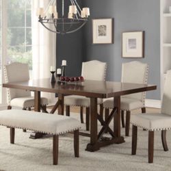 Brown 7PC DINING SET Dining Table + 4 Chairs and Bench (F2398 / F1548)$729Glendale, CA