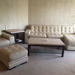 Leather Tufted 4-Piece Sectional Sofa (One-arm Loveseat & One-arm Chaise & Ottoman & One separate Leather Chair) Light Beige color$1,000Marina Del Rey, CA