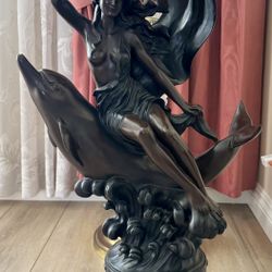 Vintage-style Sculpture depicting a draped female figure Riding A Dolphin Over Crashing Waves $50Huntington Beach, CA