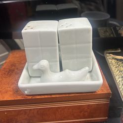 vintage or collectible ceramic salt and pepper shaker set with a duck-shaped holder$10Garden Grove, CA