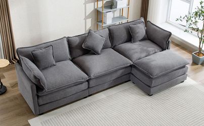 112.2 L-Shape Chenille Upholstered Sofa for Living Room Modern Luxury Sofa Couch with Ottoman, 5 Pillows, Gray$800Phillips Ranch, CA