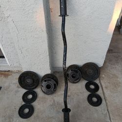 Curl Bar Two 10 Lbs Weight And Two 10 Lb Dumbbells $40El Monte, CA