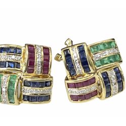 Earrings Precious Gem and Diamond Square Overlapping set on 14k Yellow Gold setting$2,000Los Angeles, CA