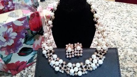 Pearl with small diamond stone necklace and earrings$10Montebello, CA