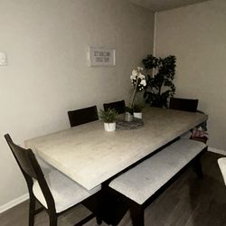 DINING ROOM SET TABLE, CHAIRS AND BENCH, WHITE GREY - [NEW]$479Gardena, CA