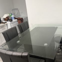 Glass Dining Room Table W/4 Leather Chairs And Bench$450Huntington Beach, CA