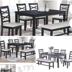✅️✅️(6 pc white & grey finish wood dining table set grey padded seat chairs and bench✅️✅️✅️$298Lakewood, CA