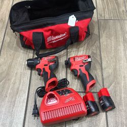 Milwaukee M12 12-Volt Lithium-Ion Brushless Cordless Subcompact Drill and Impact Driver Combo Kit w/2 Batteries and Bag (2-Tool)$150Bell Gardens, CA