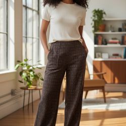 NEW Max Studio Wide Leg Pants Women’s Medium Brown Knit Flat Front Pull On NWT $37Glendora, CA