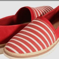 Clarks Serena Paige women's loafer in red textile and suede with white stripes. $50Los Angeles, CA