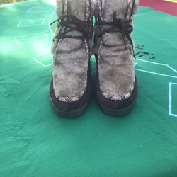 Very Comfortable Sketchers With Grey Fur. Size Is 7.5 Fits People That Are Size 7 Like Me. Great Warm Shoes Sneaker Boots $45Torrance, CA