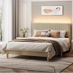 Queen Bed Frame with Adjustable Headboard, LED Lighting, Vertical Channel Tufted Corduroy Upholstered, Solid Wooden Slats Support, No Box Spring Neede$110Anaheim, CA