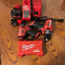 Milwaukee New Kit Hammer Drill And Impact Fuel m12 Batteries And Charger $200Los Angeles, CA
