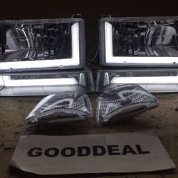 #156 Fit 92-96 Ford F150/f250/f350 Chrome/Clear LED Headlight Lamp Lights $60El Monte, CA