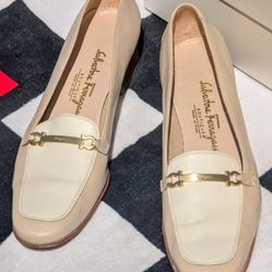 Vintage Salvatore Ferragamo Boutique Tan/White 8.5 AA Dress/Loafer ~ Made In Italy. Heels are 1.5 inches.$30Phillips Ranch, CA