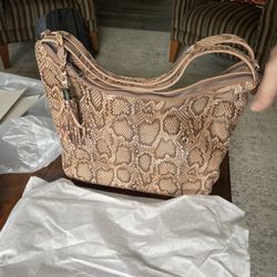 Brand New Khaki & Black Genuine Leather Snake Print Hobo Bag Purse Shoulder Strap Dust Bag$65Anaheim, CA