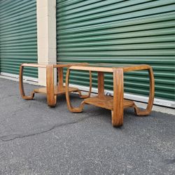 Vintage 1970s Oak & Glass Bentwood Side Tables End Tables Retro Postmodern Mid Century Boho$295Bellflower, CA