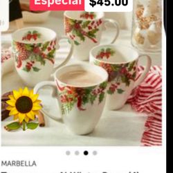 Set De 4 Tazas Para Café Marbella Noche Buena $45.00 Princess House $45Long Beach, CA