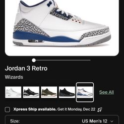 Jordan 3 Retro Wizards Size 12$180Bellflower, CA