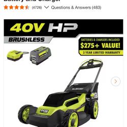 RYOBI ONE+ HP 18V Brushless 16 in. Cordless Battery Walk Behind Push Lawn Mower with (1) 4.0 Ah Batteries and (1) Charger$100Los Angeles, CA