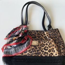 BRIGHTON AYANNA AFRICA STORIES LEOPARD PRINT LEATHER FLORAL SCARF BLACK AND BROWN TOTE$150San Dimas, CA