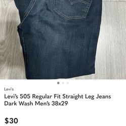 Levi’s 505 Men’s Jeans 38x29 Dark Wash Great Condition $30Lynwood, CA