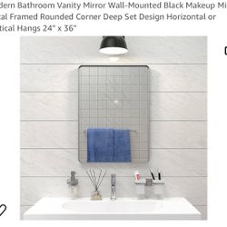 Modern Bathroom Vanity Mirror Wall-Mounted Black Makeup Mirror Metal Framed Rounded Corner Deep Set Design Horizontal or Vertical Hangs 24" x $85Chino, CA