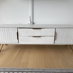 64” White TV/Media Stand w/ Fluted Glass & Storage [NEW / NEVER USED] <ALREADY ASSEMBLED>$100City Of Industry, CA