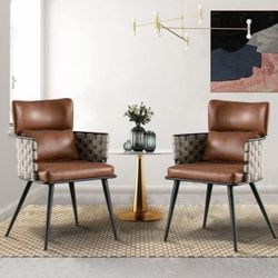 Dining Chairs Set of 2, Mid-Century Modern Dining Chairs with Metal Legs, Faux Leather Woven Dining Chairs for Dining Room, Kitchen, Living Room$100City Of Industry, CA